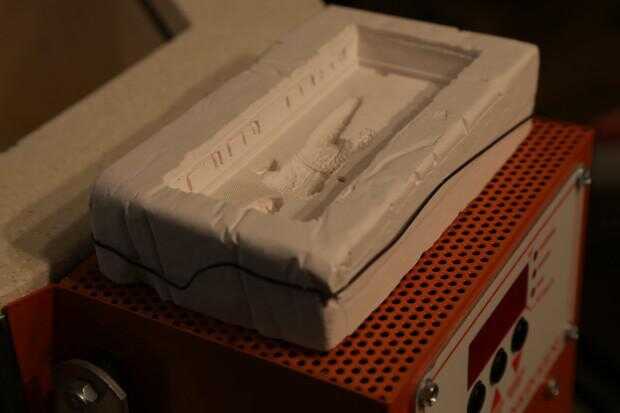 Asegúrese de que utilizar un guante caliente para manejar el molde ya que se calientan (duh). Luego, usando un par de pinzas puede comenzar a extraer el molde de la madre del molde de yeso. Si su molde madre roturas aparte, no se preocupe acerca de él. Siempre puede repararlo o imprimir otro. Si necesita, utilice unas pinzas para quitar piezas finas que se clavan de lo contrario. Esto puede tomar algún tiempo, especialmente si usted tiene un modelo más detallado. Si usted es incapaz de eliminar algunas de las piezas, no te preocupes, el siguiente paso se encargará de esto. Cuando se quita el molde madre apague el horno y deje que la pieza se enfríe lentamente a la temperatura interior del horno. Después de que se haya enfriado sáquela y proceder.