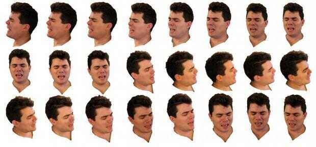 La siguiente imagen compuesta muestra la mayor parte de la limpieza para arriba tecla marcos que mi encantadora ayudante (leer: encantadora esposa) tomó de mí. Estas imágenes fueron procesadas por 123DCatch para producir el modelo 3D de mi rostro.