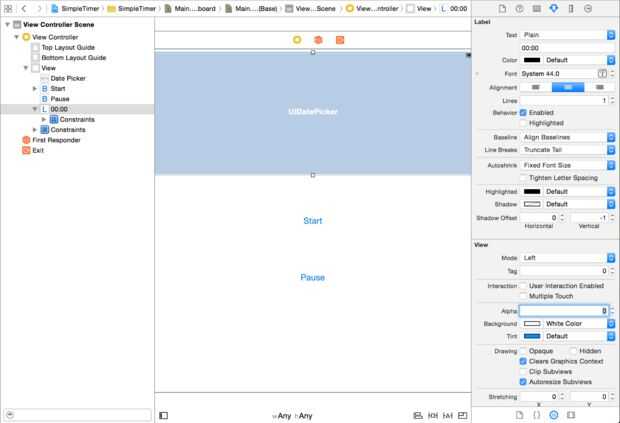 Nota: En este paso crearemos la interfaz de usuario para el temporizador. Esto incluye el selector de tiempo, así como los botones Start, Stop y Pause.