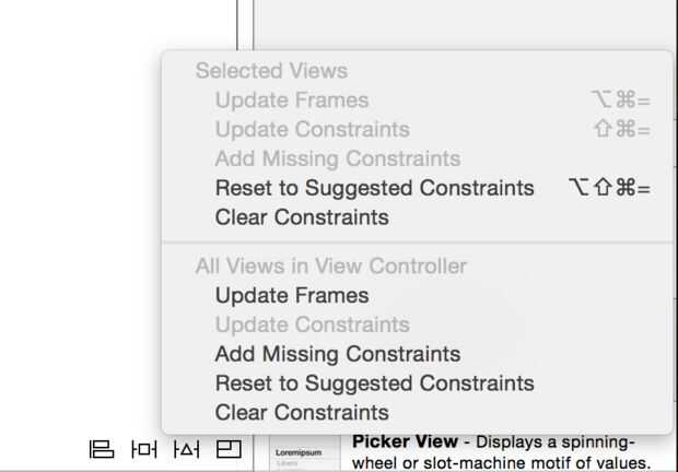 3 C. agregue el objeto 'Selector de fecha' en la parte superior de la pantalla. Haga clic en el icono en la parte inferior de la ventana de Xcode que parece un triángulo entre las líneas verticales, luego haga clic en la opción 'Añadir restricciones que falta'.