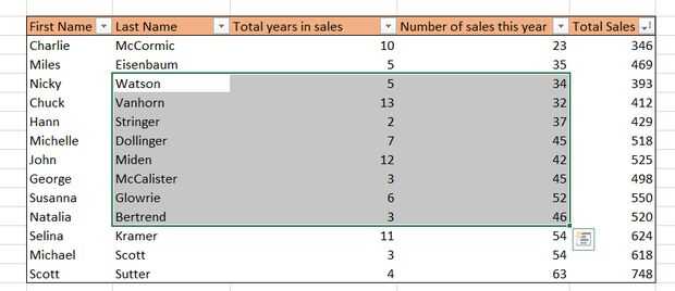 Las células que se han seleccionado deben ser resaltadas con un color gris y rodeadas por un borde más grueso