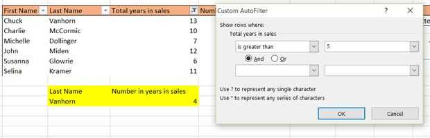 Pueden utilizar comparaciones numéricas como mayor que, menor queo entre dos números. También puede filtrar los datos están igual o no igual a un cierto número, y un filtro personalizado se puede configurar para filtrar dos condiciones simultáneamente.
