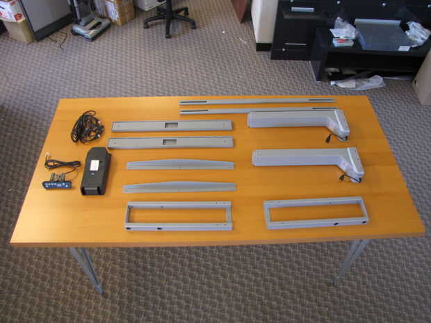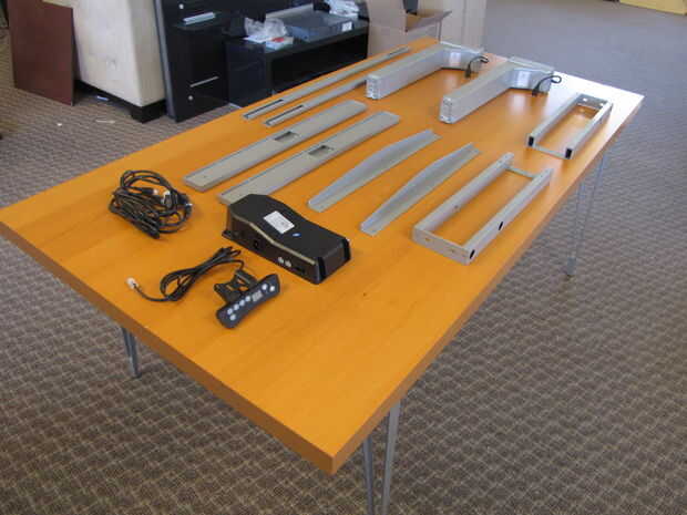 En el embalaje se encuentra (según el modelo pedido) vigilará que se eleve y baje la mesa, algunas piezas metálicas que conforman el marco de la unidad, incluyendo un controlador, algunos cables de potencia y una caja de control, electrónica y por supuesto algunos dispositivos como tornillos, pernos y una llave hexagonal.