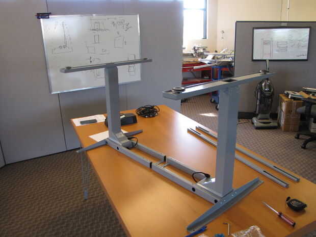 Cuando llevas atado un pie a cada estructura que ha construido, seguir adelante y tornillos de las almohadillas que van en cada extremo de los pies, esto va a proteger su suelo. Cuando haya terminado este paso, seguir adelante y poner las estructuras hacia el lado por el momento y vaya al paso 6.
