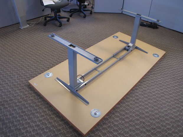 Ahora puedes ir y agarrar los travesaños que has marcado, y las estructuras ponemos juntos y simulado ellos encima de la parte posterior de la tabla.