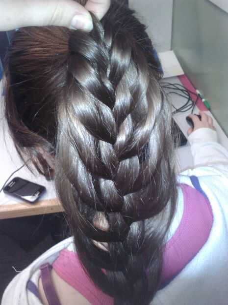 lo que necesita: 2 hairties pequeño, un cepillo y un peine de cola¿Lo que?Hice un nuevo tipo de francés de la trenza que no he visto nunca en el que dos trenzas cruzadas en la parte posterior de la cabeza para formar una forma de X.¿Cómo lo hiciste?C