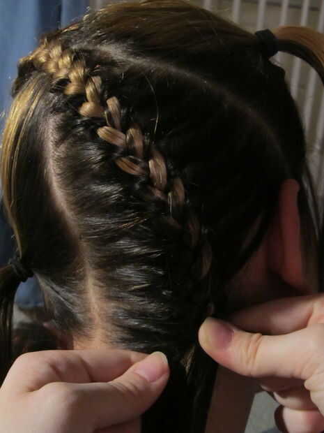 Francés trenza en la parte derecha inferior, seguro que a mantener en línea con la parte superior izquierda sección diagonal.