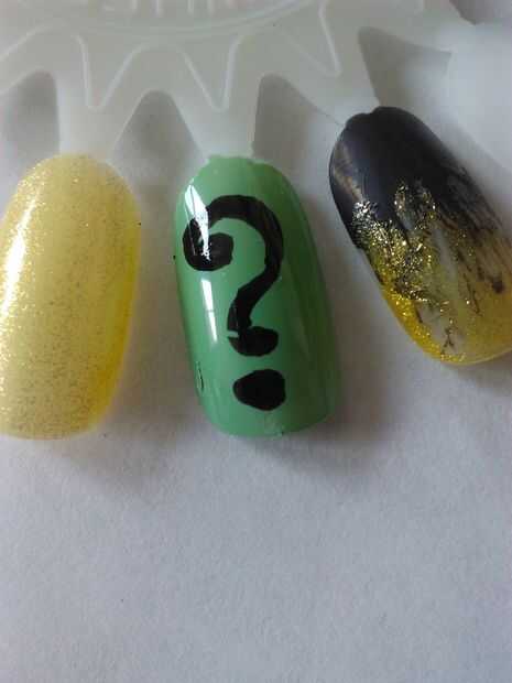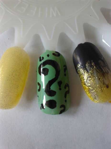 para los riddlers uñas pintura arte el clavo toda verde. con el negro uñas pluma de arte pintura una gran interrogante, que añadir un montón de pequeños signos de interrogación.