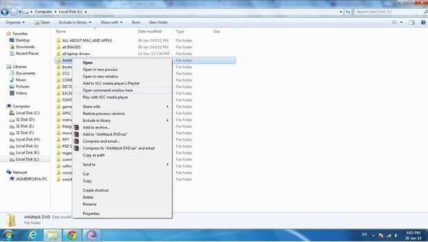 La creación de varias carpetas, sin embargo, puede ser acortada usando el símbolo del sistema. Para Windows Vista y Windows 7, directamente puede abrir una carpeta desde el explorador de Windows mediante el símbolo del sistema. Simplemente mantenga pulsada la tecla Mayús y haga clic con el botón derecho del ratón en el explorador en la carpeta donde desea crear subcarpetas adicionales. Después de eso, la opción "Open Command Prompt Here" debería aparecer. Simplemente haga clic en él y pasar al siguiente paso.