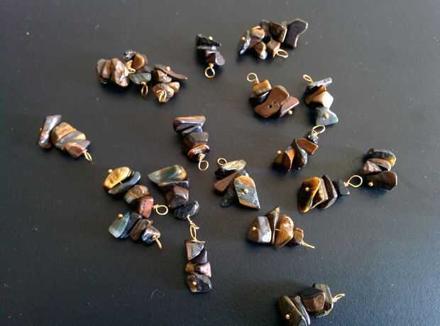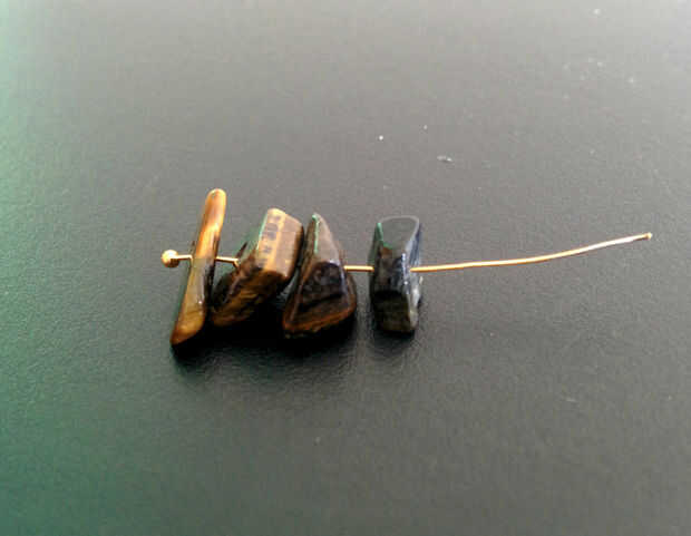 Nota sobre headpins: Si no tienes headpins, use un alambre fino o hilo que se adapte al grosor del agujero en las virutas de las piedra. Crear un bucle primero como se mencionó anteriormente y comience a colocar las fichas. Esto actuará como la cabeza.