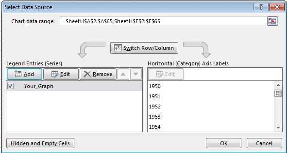 Después de seleccionar los datos y haga clic en aceptar, aparecerá la misma ventana del paso 12, pero con una serie de datos agregado. En este punto que también se podría añadir más series de datos, si es necesario, haga clic en Agregar nuevo. Haga clic en Aceptar cuando haya terminado.
