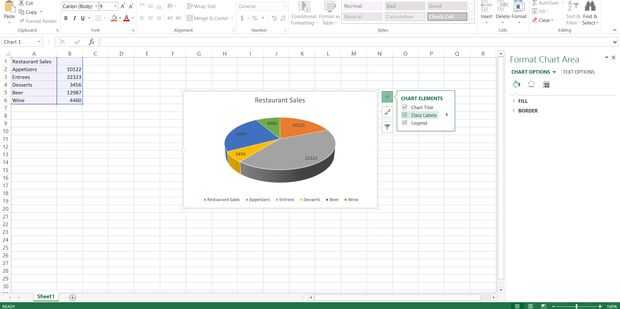 Revise las "etiquetas de datos" cuadrados y las etiquetas aparecerán en el gráfico. Enhorabuena, has creado un gráfico etiquetado.