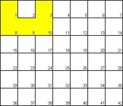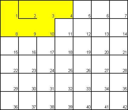 Vamos a empezar con una gran variedad de células. Cada celda tenía cuatro direcciones con cuatro celdas. Cada célula puede ser "visitado" o "no visitados".