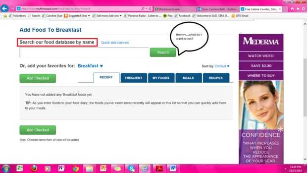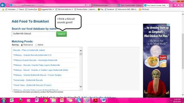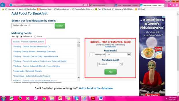 -Habrá una lista de alimentos a la izquierda de la página. Encontrar la galleta que desee y haga clic en él a la derecha será una caja con el número de porciones, escriba el número adecuado de porciones.