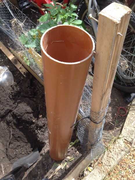 Así que salir y conseguir un tubo de 10cm - 15cm de ancho y cortado a la altura deseada, teniendo en cuenta unos 30cm de la parte inferior que será enterrado