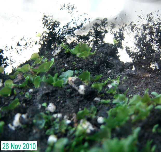 Esta parte requiere paciencia, como se puede ver desde las fechas en mis fotos anteriores este proceso puede tardar un rato (comenzó en julio de 2010).  También es importante tener en cuenta que lo primero que vemos crecer, prothalli (gametofitos), mira nada como el helecho maduro (ver Descripción del ciclo de vida del helecho más abajo).  Recuerde mantener el suelo húmedo en todo momento y eventualmente comenzará a cosas sucediendo.