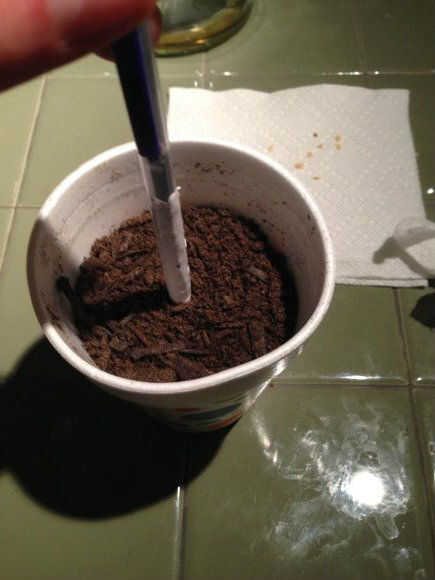 2. con un lápiz o un objeto similar, hágale un agujero en la tierra en el centro de la Copa que se extiende hacia abajo sobre una media pulgada.
