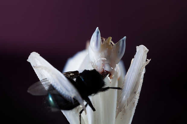 Moscas domésticas y moscas azules - Algunas mantis hijo más tiquismiquis con la comida otras. Esto depende tanto de la especie como de la parrilla. Mantis de una si no comerá, y no se debe a una enfermedad o un ciclo de mudar de piel, puede ser tengas cambiar a una de estas dos variedades de mosca para hacerle comer otra vez. La mosca doméstica está bien para las mantis aún no son adultas pero son demasiado grandes para las moscas de la fruta. Y la mosca azul es mejor para los adultos maduros. Debido a su tamaño pequeño, muchas moscas son necesarias para alimentar una mantis adulta. Las moscas suelen llegar en forma de pupa y pueden tardar hasta una semana en salir del cascarón. Pupas de las de las puedes comprar a granel y montaje poco a poco en la jaula. O puedes esperar hasta salen del cascarón e introducirlas en la jaula como moscas adultas. Esto es mejor para la mantis. Puedes poner las moscas en el refrigerador para enfriarlas para que sean más banknotes de agarrar y poner en la jaula.