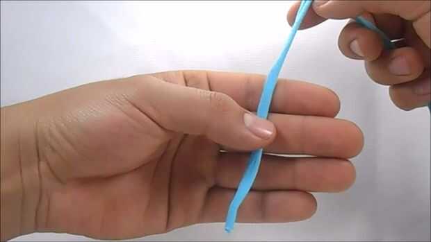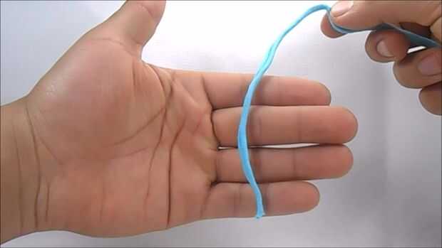 Para comenzar el tutorial para nuestro anillo mágico, vamos a tomar el hilo con nuestra mano derecha, y vamos a poner encima de la mano cuatro dedos de la izquierda, ahora, con nuestro pulgar vamos a pulsar el hilo contra el dedo medio.