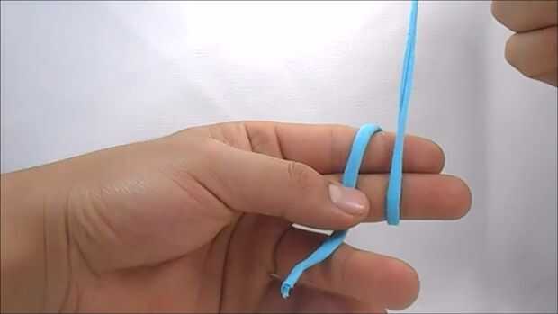 Mientras estamos haciendo este (presionando el hilo contra el dedo medio), con nuestra mano derecha vamos a tomar