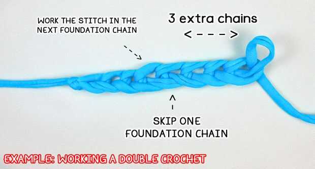 Si usted ha decidido contar las cadenas extras como la primera puntada, para encontrar la cadena de la Fundación exacta donde vas a empezar a hacer la segunda puntada de la fila, usted tiene que ignorar las cadenas extras que trabajamos para dar altura a la puntada, ahora saltar la cadena de base siguiente y en la siguiente es donde se puede trabajar la segunda puntada.