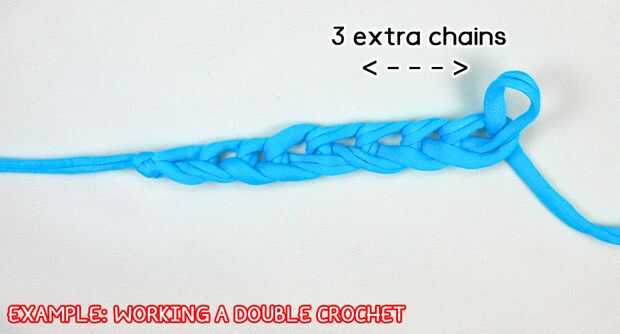 Ahora, si usted ha decidido no contar el extra las cadenas como la primera puntada, que es algo que sólo se recomienda cuando se trabaja en rondas, debe pasar por alto una vez más las cadenas extras y vamos a trabajar la primera puntada en la cadena más cercana de la Fundación.
