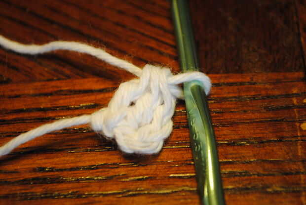 Puntada de resbalón cadena 3 en la primera cadena a la cabeza de forma