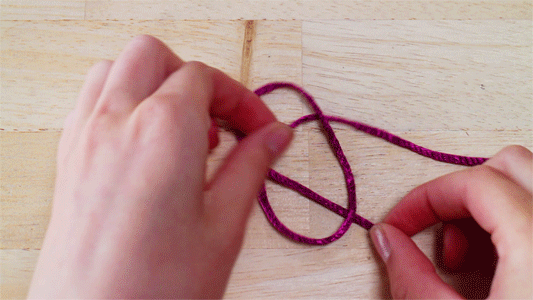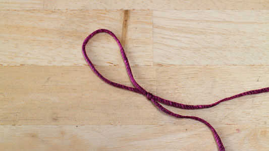 Comience el nudo del resbalón establecen el hilo y lo bucle. Asegurándose de que el pedazo corto, la cola, es en la parte superior el hilo largo. A continuación, baje todo, en el hilo más largo. Agarrar el hilo medio entre el pulgar y el dedo índice y tire suavemente el hilo medio. Agárrate a la cola y estire el lazo.