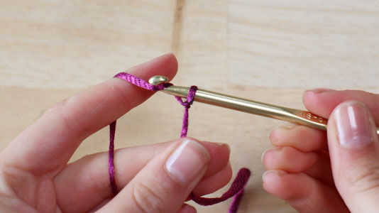 Comenzar con la puntada de cadena partida torciendo el hilo alrededor del gancho y tire de ella a través del lazo.