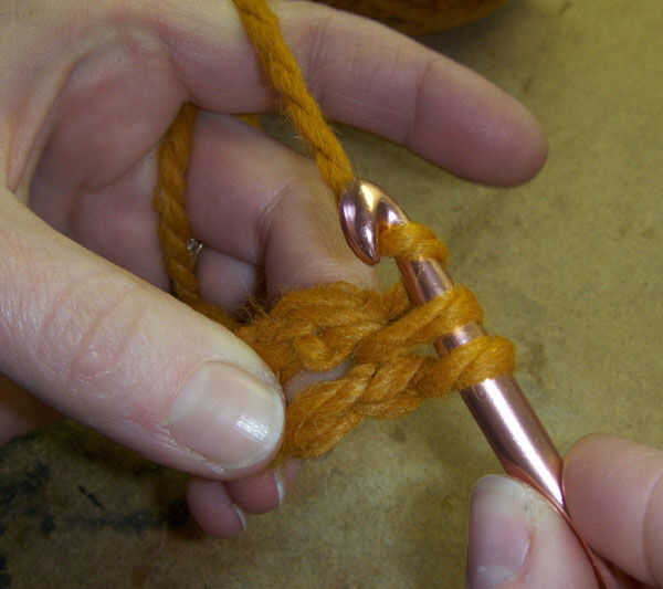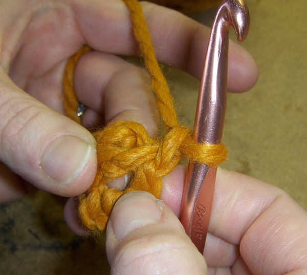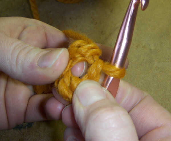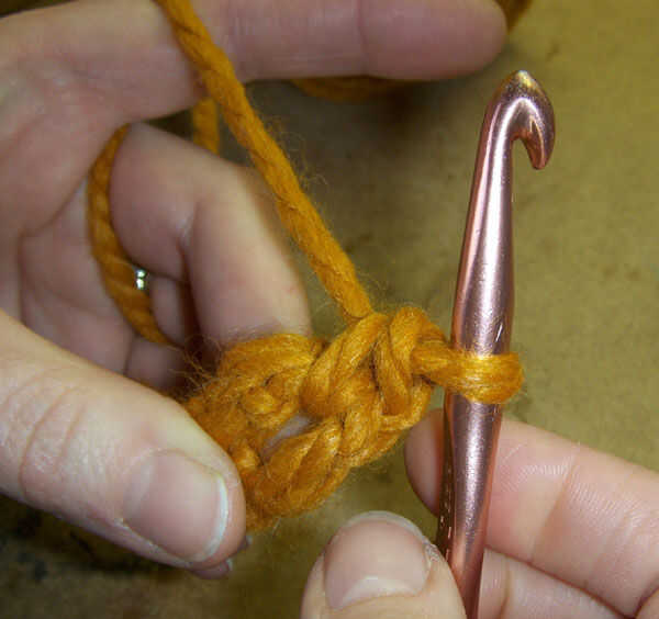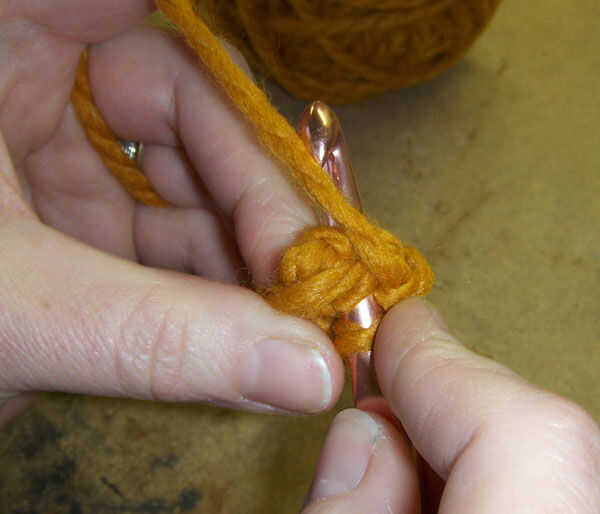 Elaboración de un lazo y tire de ella a través de ambos lazos en gancho (Foto 5); un punto bajo en el anillo completo. Hacer punto 5 bajo más en el ring.