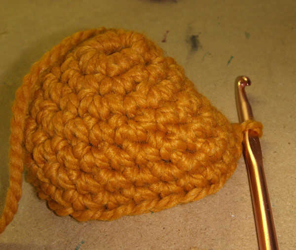 Ronda 6: marcador 1 y lugar de la cadena. 1 sc en cada st toda la manera alrededor de marcador.