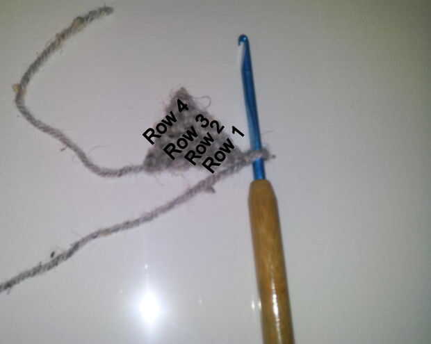 6. ch uno luego otra vez del tirón, su trabajo y sc en cada punto de la hilera anterior, ahora debe haber 4 sc.