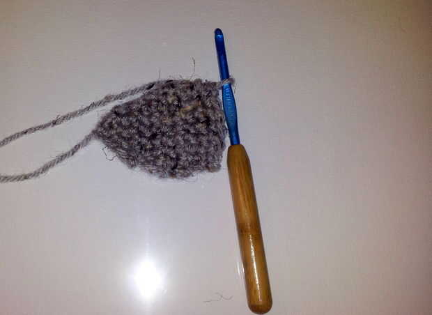 5. Sc en cada punto de la última fila, debe ser 3 sc en esta fila.