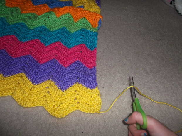 Hacer un nudo en el extremo de la manta y cortar el hilo extra. A continuación, coser los extremos sueltos de hilo en la manta. Ahora ha realizado este proyecto!