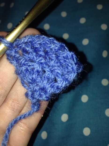 En la primera puntada de la siguiente fila del ganchillo una puntada doble, en las siguientes dos puntadas crochet dos dobles en dos de ellos, entonces sólo un doble en la próxima puntada
