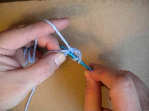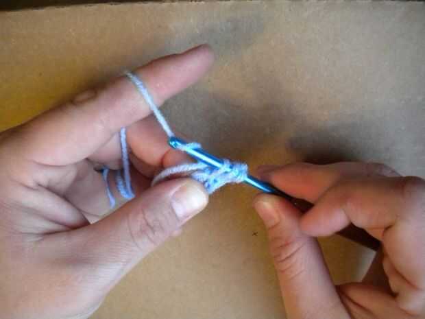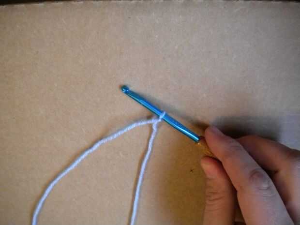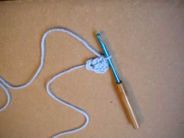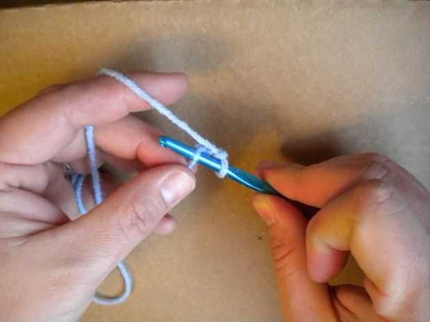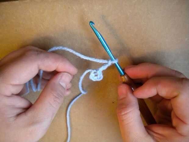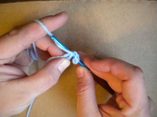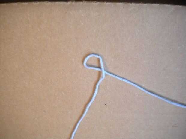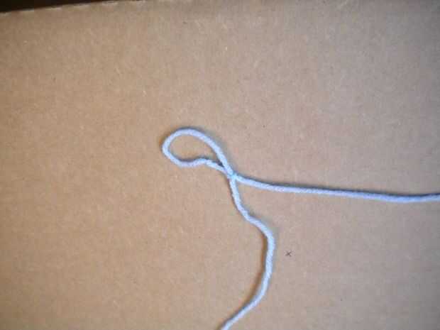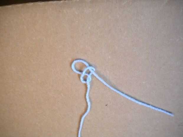 Hacer un slipknot con su hilo e Inserte el gancho en el nudo.