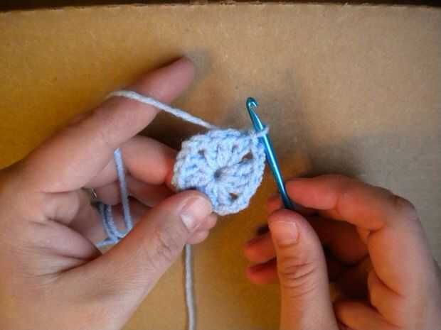 Concluye la primera ronda. Todas las rondas posteriores son simplemente una repetición de esta ronda. La única diferencia es el número de conchas que hará y la cantidad de puntadas de cadena entre cáscaras.