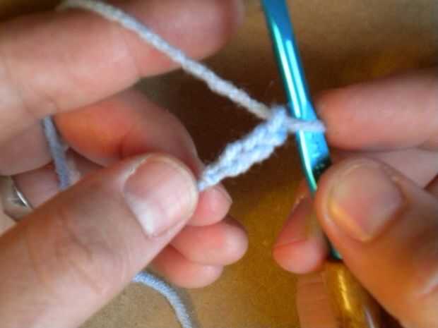Puntadas de cadena 2 luego inserte el gancho en la segunda puntada de la primera cáscara que hizo (la segunda puntada de la cadena 3 que lo hicimos directamente después de hacer el anillo).