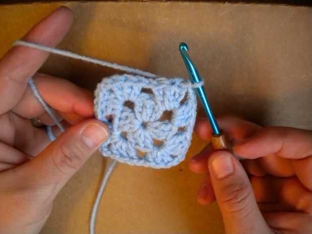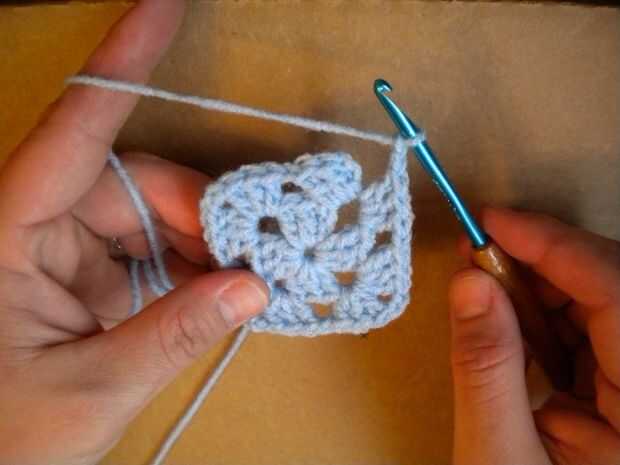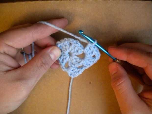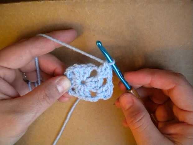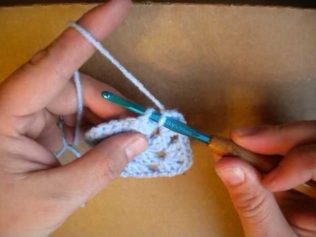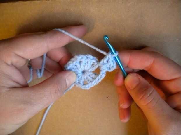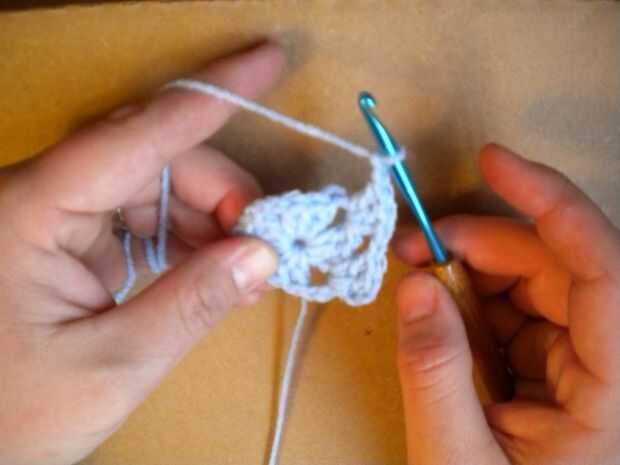 Crochet doble otra vez en el mismo agujero. Hace tres ganchillos doble o una "concha".