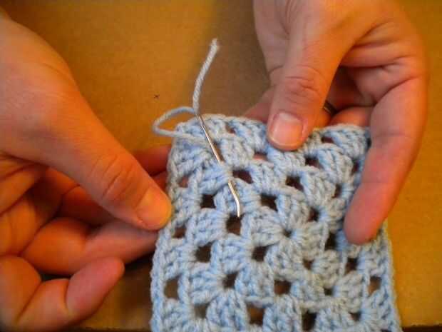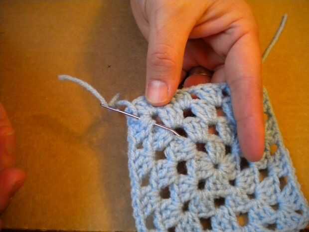 Ahora a coser en los extremos sueltos. Utilice una aguja grande y pase el hilo a través de él.