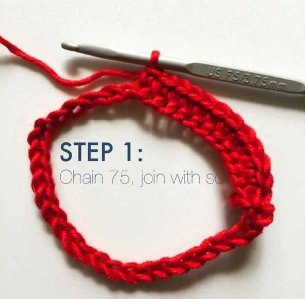 75 de la cadena en rojo, uniendo el anillo con un sc