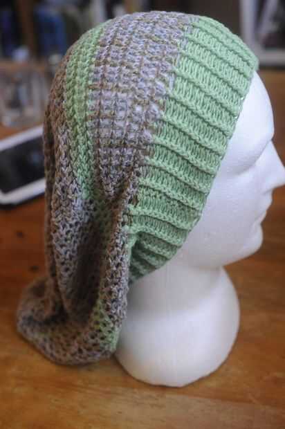También se puede ver en las fotos que he Unido que hice unas variaciones para mostrar lo que podría hacer. El azul y rojo fue sólo una variación de color simple en el patrón básico, pero el verde y sombrero gris es de mi colección personal y fue hecha para sostener mis dreads desordenados. Comencé con el aumento de los 12 rounds en lugar de 8 (120 puntadas alrededor) hice el cuerpo un poco más... Creo que fue alrededor de 12 rondas en lugar de 6, luego agregar unas cuantas rondas de disminución por lo que pude volver a 80 puntos de sutura antes de la muesca.