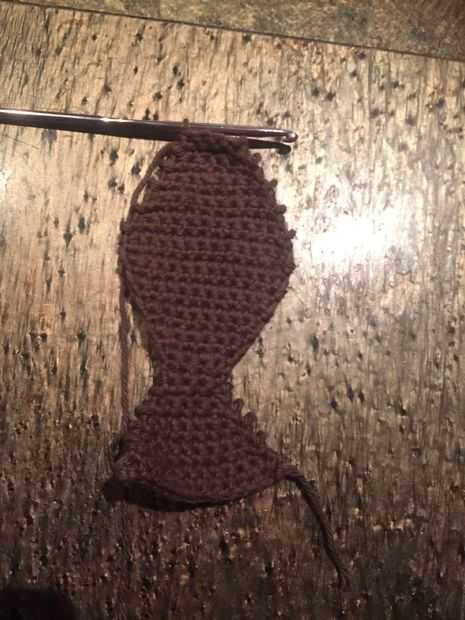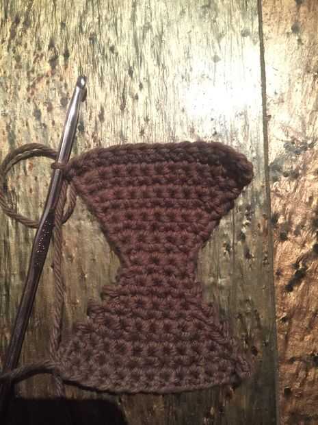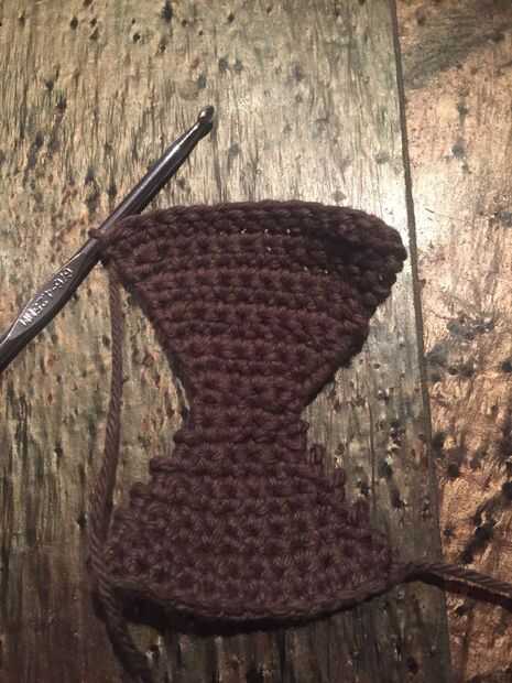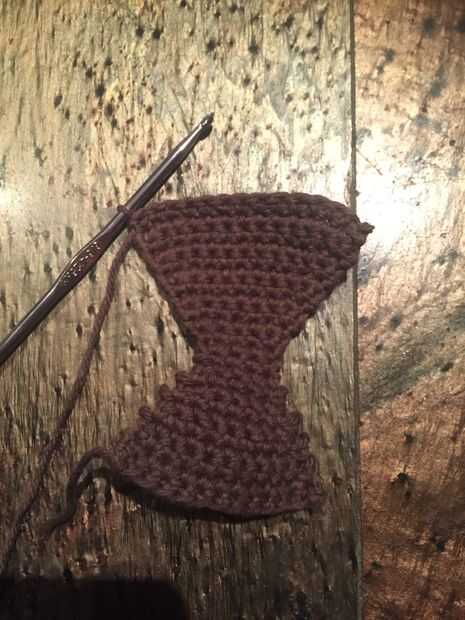 Para acabar el primer "cuerpo" de la pajarita, los pasos son casi exactamente lo mismo que el último paso, pero ahora nosotros estamos aumentando el número de puntadas. Empezar por sc, uno en cada st. Luego sc dos en la primera puntada, luego uno en el resto de la San repetir ese paso sobre hasta tener 14 st. Una vez, repita el paso 5 (último paso) para volver a 4 st. El patrón es el siguiente: