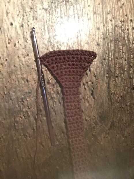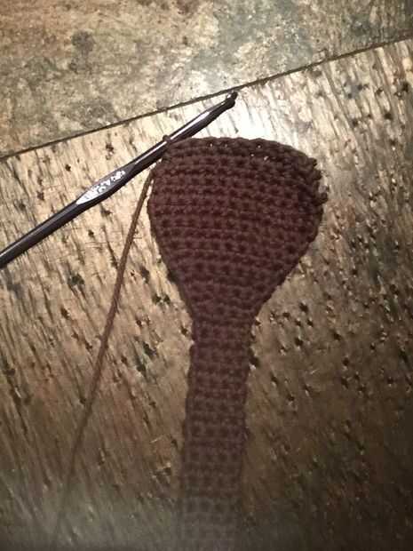 Bueno, tramo final! Para hacer el último cuerpo, realmente desea trabajar hacia atrás desde el patrón. Así, sc dos en la primera puntada, luego sc en cada St. repetir todo el proceso hasta volver a 14 st en su ch. Luego sc uno en cada st. El patrón se ve así: