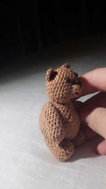 Este patrón de ganchillo es sencilla pero se usa hilo de crochet #10 que puede ser difícil para los principiantes. Es para hacer un osito de peluche pequeño de aproximadamente 2 pulgadas de alto. Este poco chicos es perfecta para casas de muñecas o como regalos o como un pequeño nuevo amigo para ti. Si eres un veterano crocheter este peluche no tarde mucho, y si usted es un principiante este es el patrón perfecto para desafiarse a sí mismo con. Las puntadas son simples y repetitivos pero el bordado y montaje puede frustrar cualquier persona para practicar la respiración profunda.