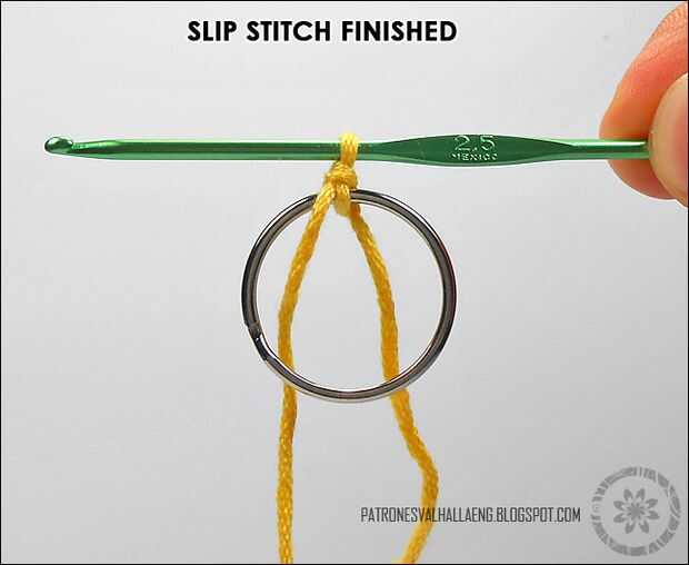 Nudo del resbalón. Únete al nudo del resbalón y el aro con una puntada de resbalón.