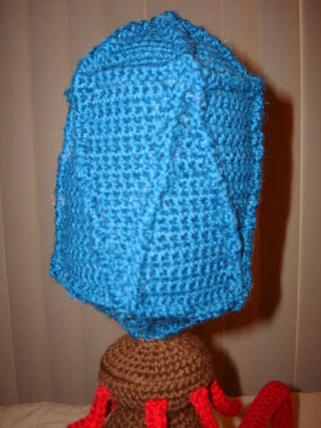 Bacteriófago cabezas contienen el ADN viral. Generalmente son representados como un icosaedro - una figura geométrica sólida, formado por 20 triángulos. Hay 5 triángulos cuyos vértices se reúnen en la parte superior, 10 que el centro del círculo (flip cada uno boca abajo por lo que su base es en la parte superior) y 5 cuyos vértices se encuentran en la parte inferior. Usé triángulos equiláteros para la parte superior e inferior y triángulos isósceles dos veces la altura de los triángulos equiláteros de la media. Mi triángulos equiláteros comenzaron con 14 sc para la base y la disminución a 1 sc en el ápice en 13 filas. Mi triángulos isósceles también comenzó con una base de 14 sc, pero disminuyó en 26 filas. Es útil tener papel patrones a seguir. Para los 5 triángulos en la parte inferior del icosaedro, parada con 2 sc restante hay una abertura para el cuello. Cuando todas las piezas son de ganchillo, coser o crochet los juntos y cosas.