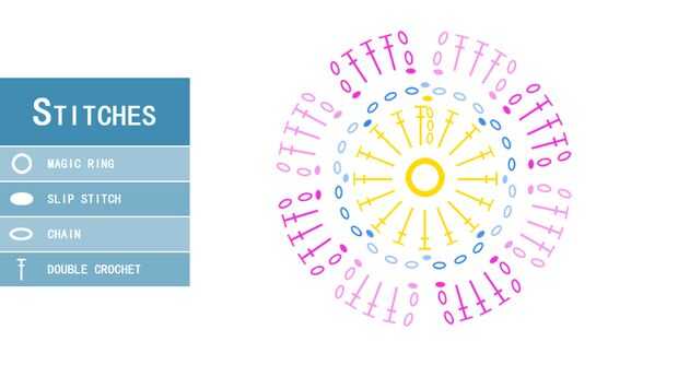Para terminar la primera ronda, trabajar una puntada de resbalón para unirse a la primera y la última doble Crochet.
