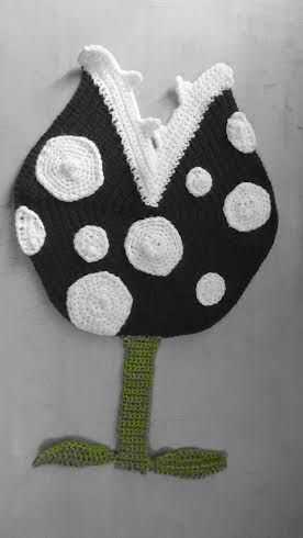 Doble su proyecto por la mitad para que los labios están juntos. En la base de la planta (enfrente del lado con la boca), conecte las cuatro puntadas de hilo verde alejándose del punto central. A partir de un mismo espacio, solo crochet una vez en las siguiente ocho puntadas (debe ser cuatro puntadas en ambos lados cuando se pliega por la mitad). A su vez y cadena una vez.
