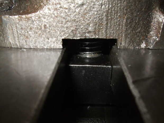 Con ambas manos, deslice la mordaza hacia y lejos de usted para tener una idea de su rango de movimiento.  Tratar a la prensa dentro de su rango de movimiento del centro. Si un lado llega a máximo durante el ajuste, reset y empezar de nuevo.  Para ahorrar tiempo durante el ajuste, utilice características simétricas en la mordaza para áspero cuadrado del tornillo con las ranuras en t.